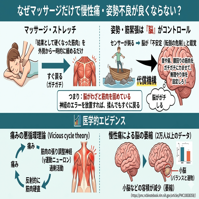 ■なぜマッサージでは慢性痛や姿勢不良が良くならないのか?