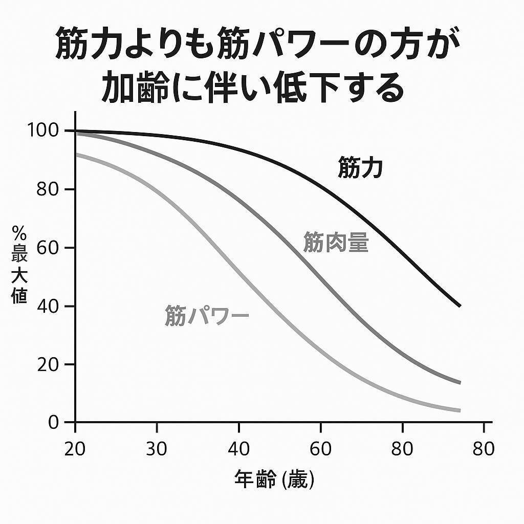 ・加齢で最も低下しやすいのは 筋力や筋肉量ではなく瞬発力
